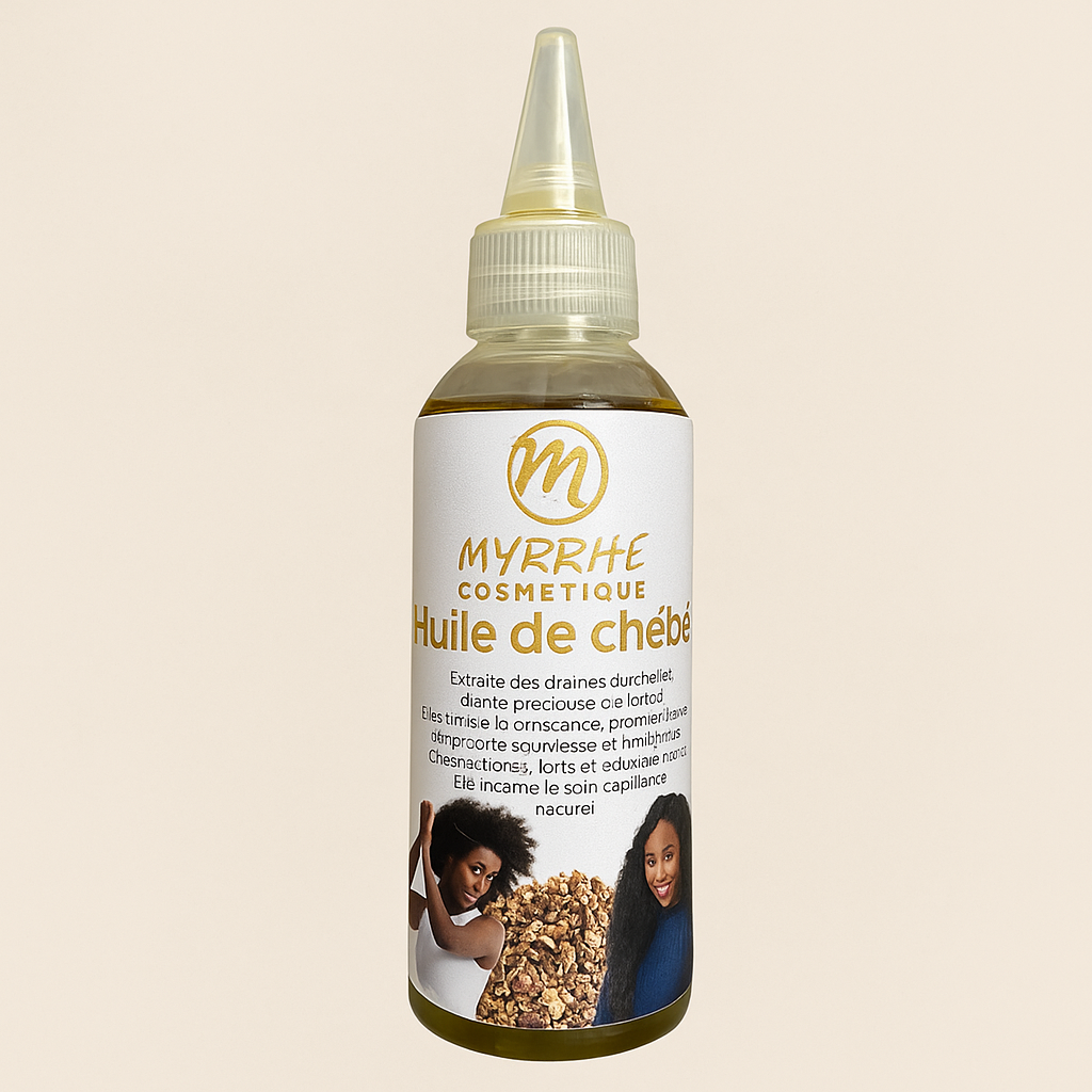 L’huile de chébé stimule la pousse, prévient la casse et nourrit en profondeur pour des cheveux longs, forts et brillants de santé.